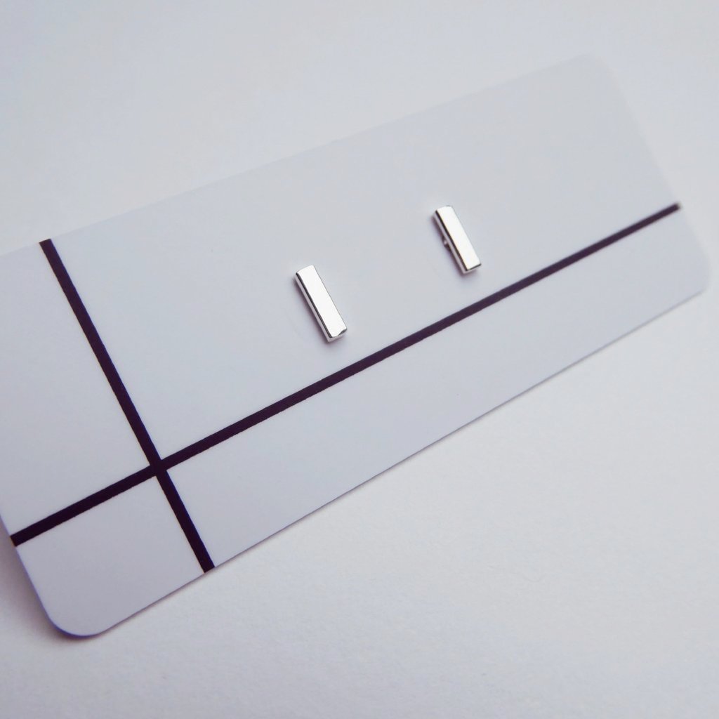 The small bar measure 6mm and are handmade in recycled sterling silver, the posts and scroll backs are sterling silver.