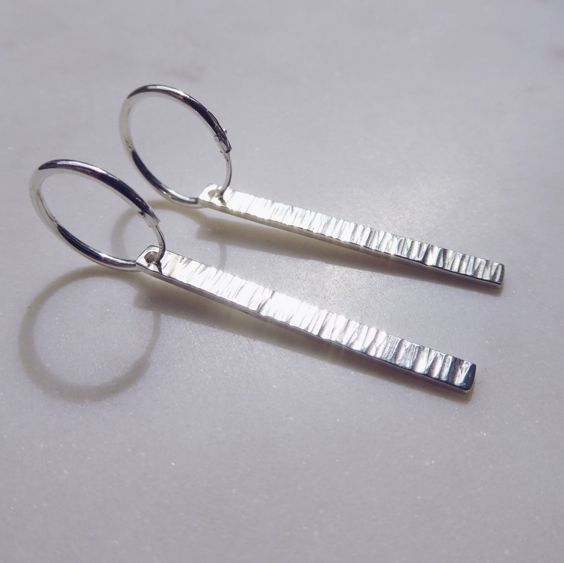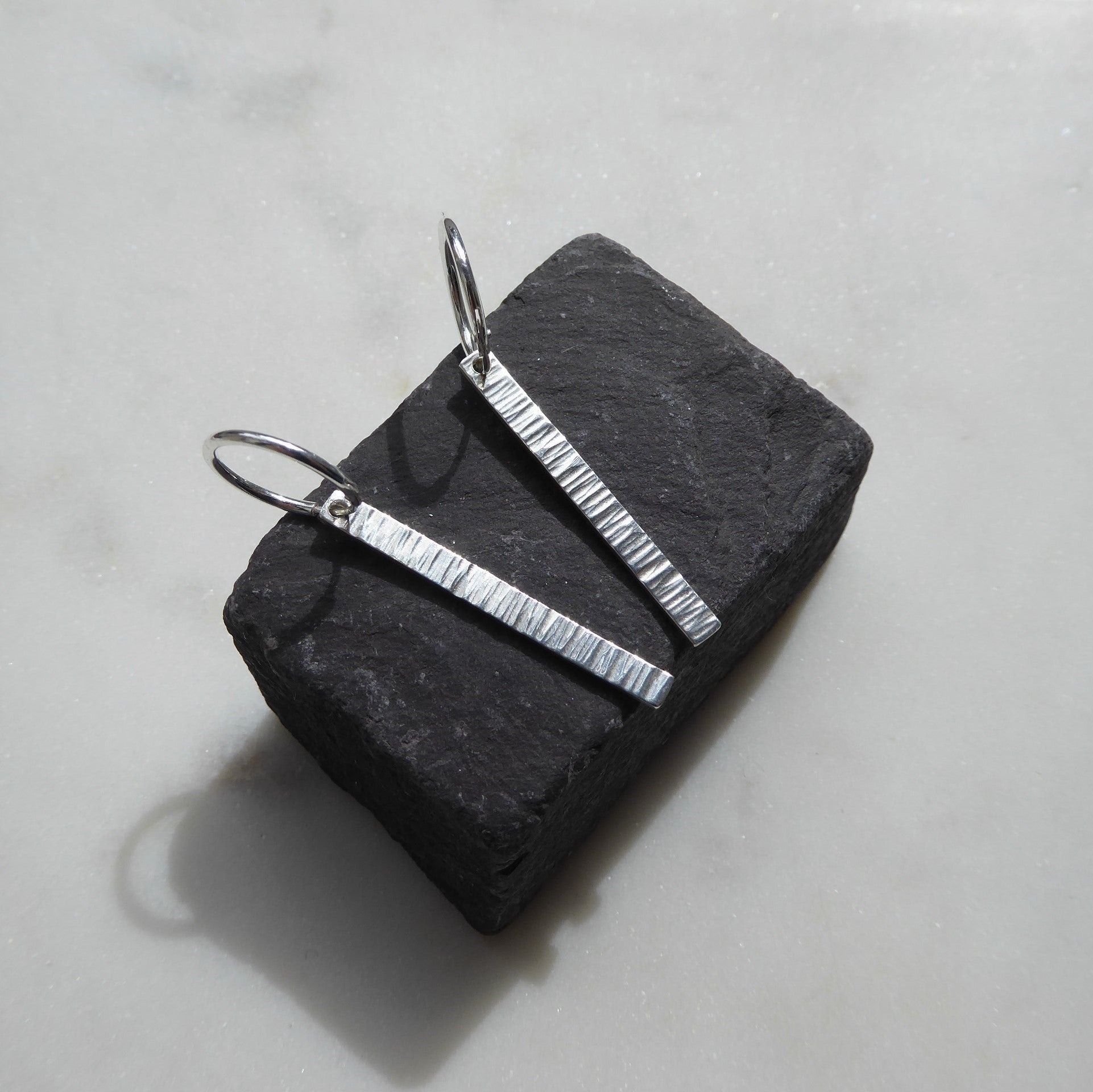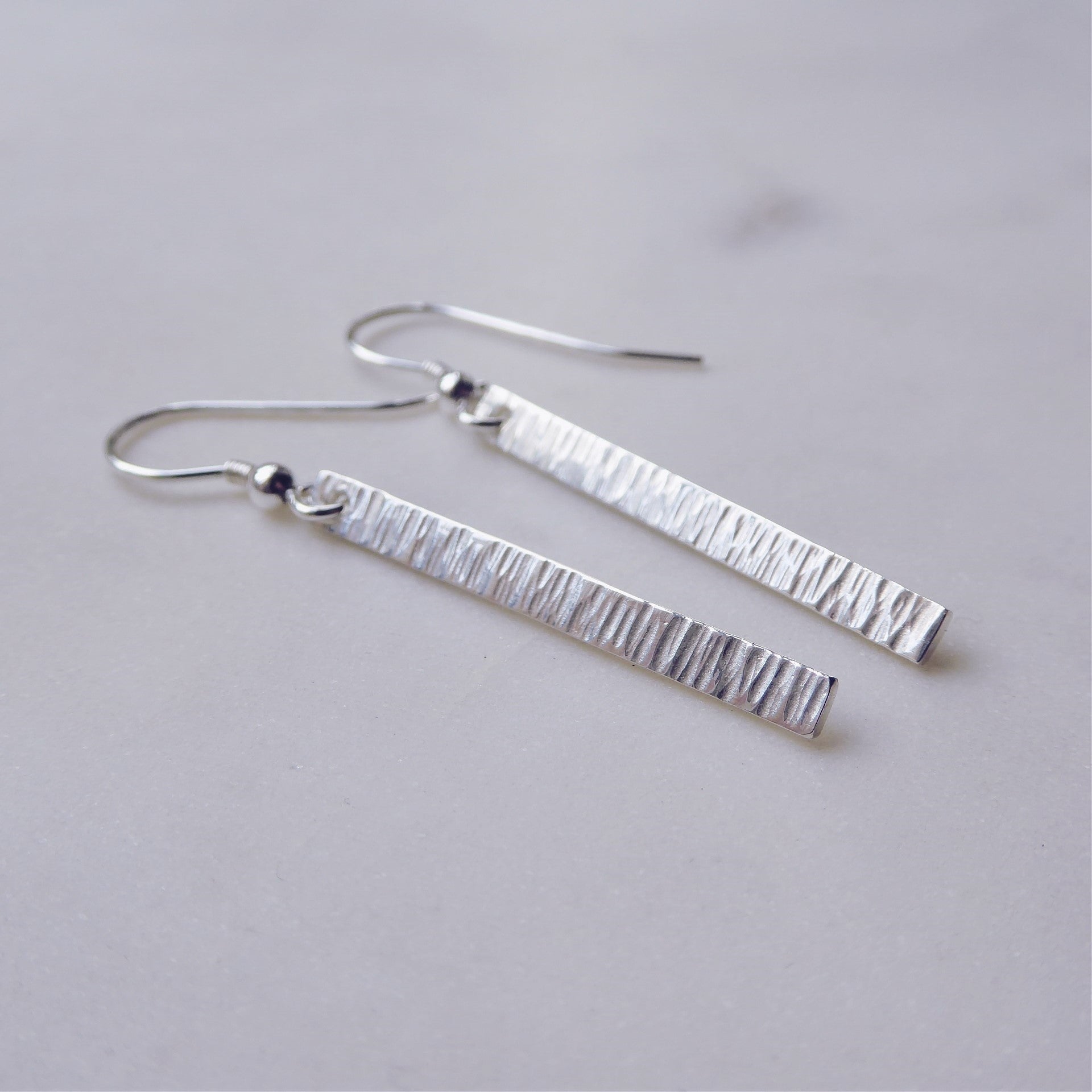 Bar earrings with a textured 'ridge' finish made from recycled sterling silver.