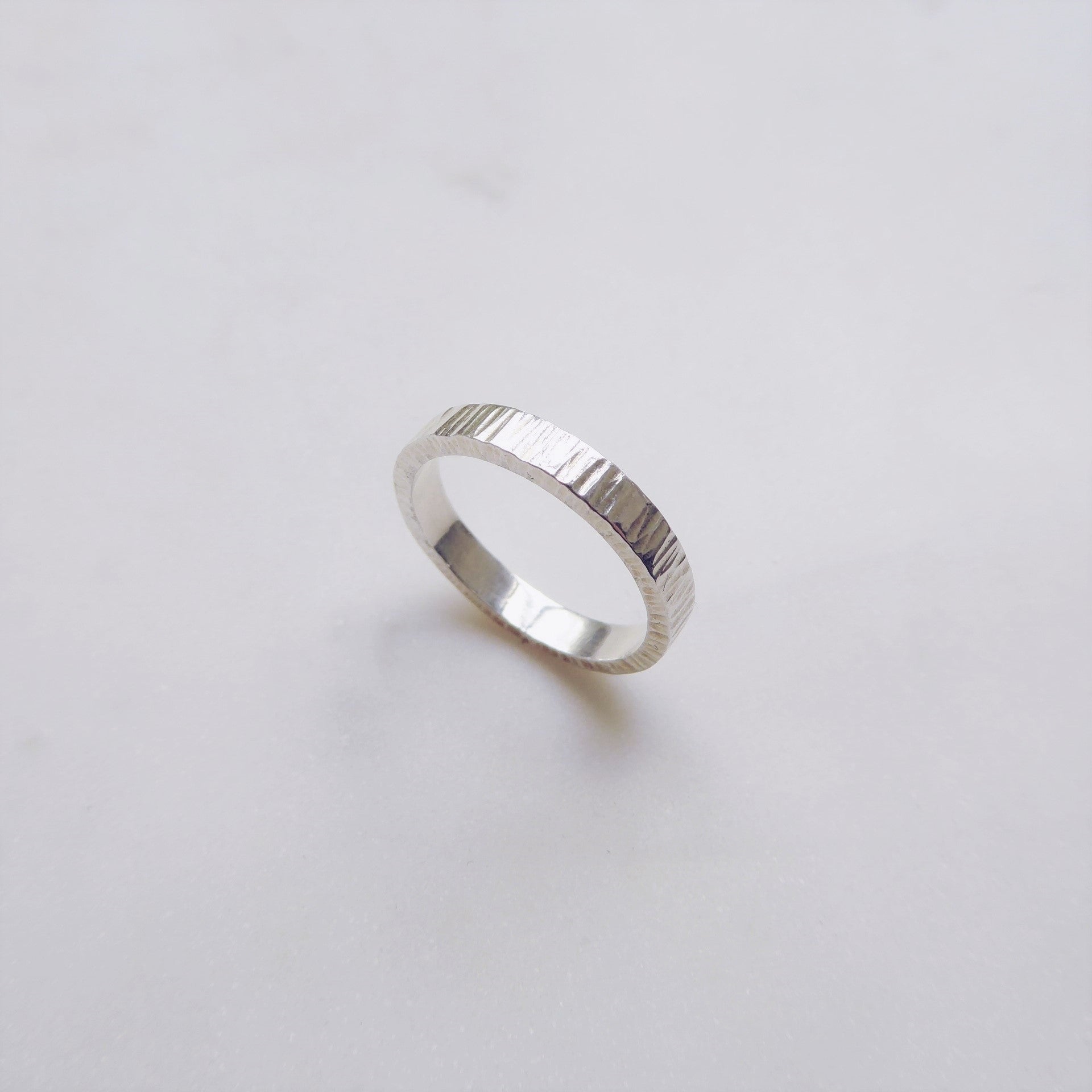 A minimal textured ring handmade in sterling silver.