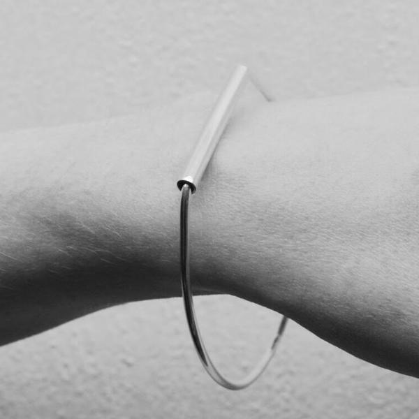 Handmade in sterling silver this bangle features a length of tube.