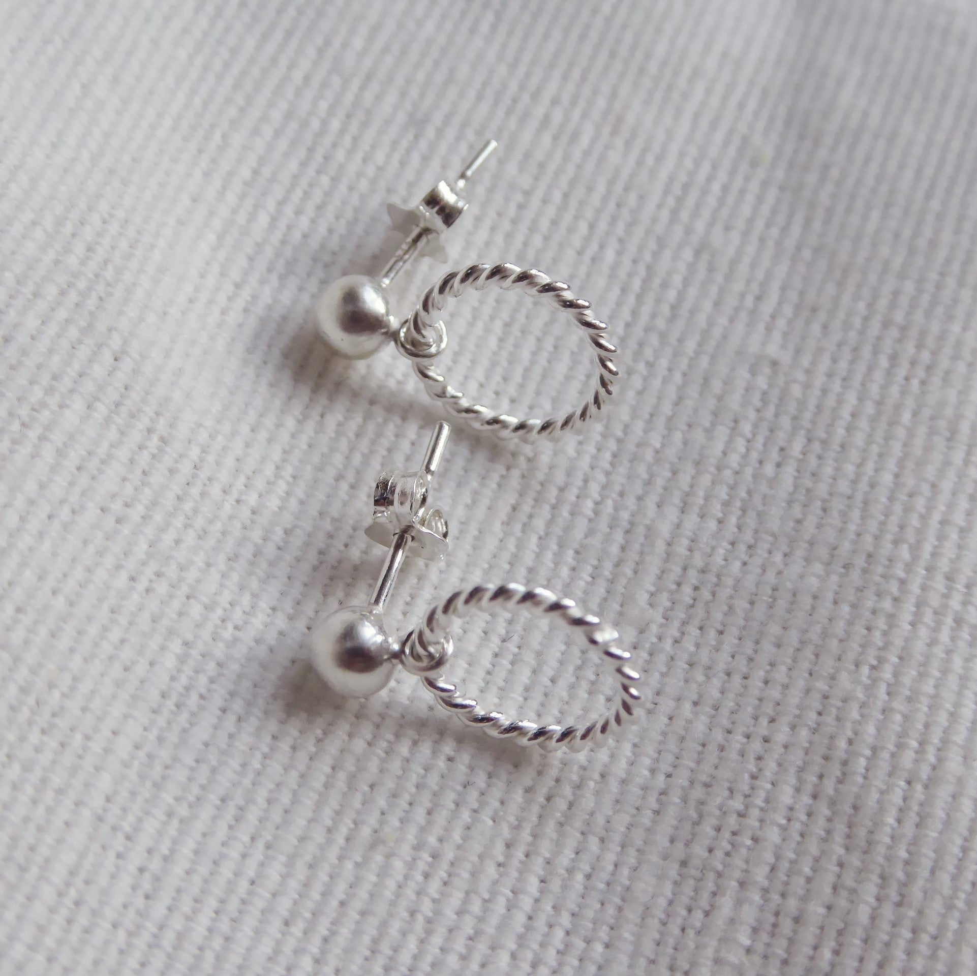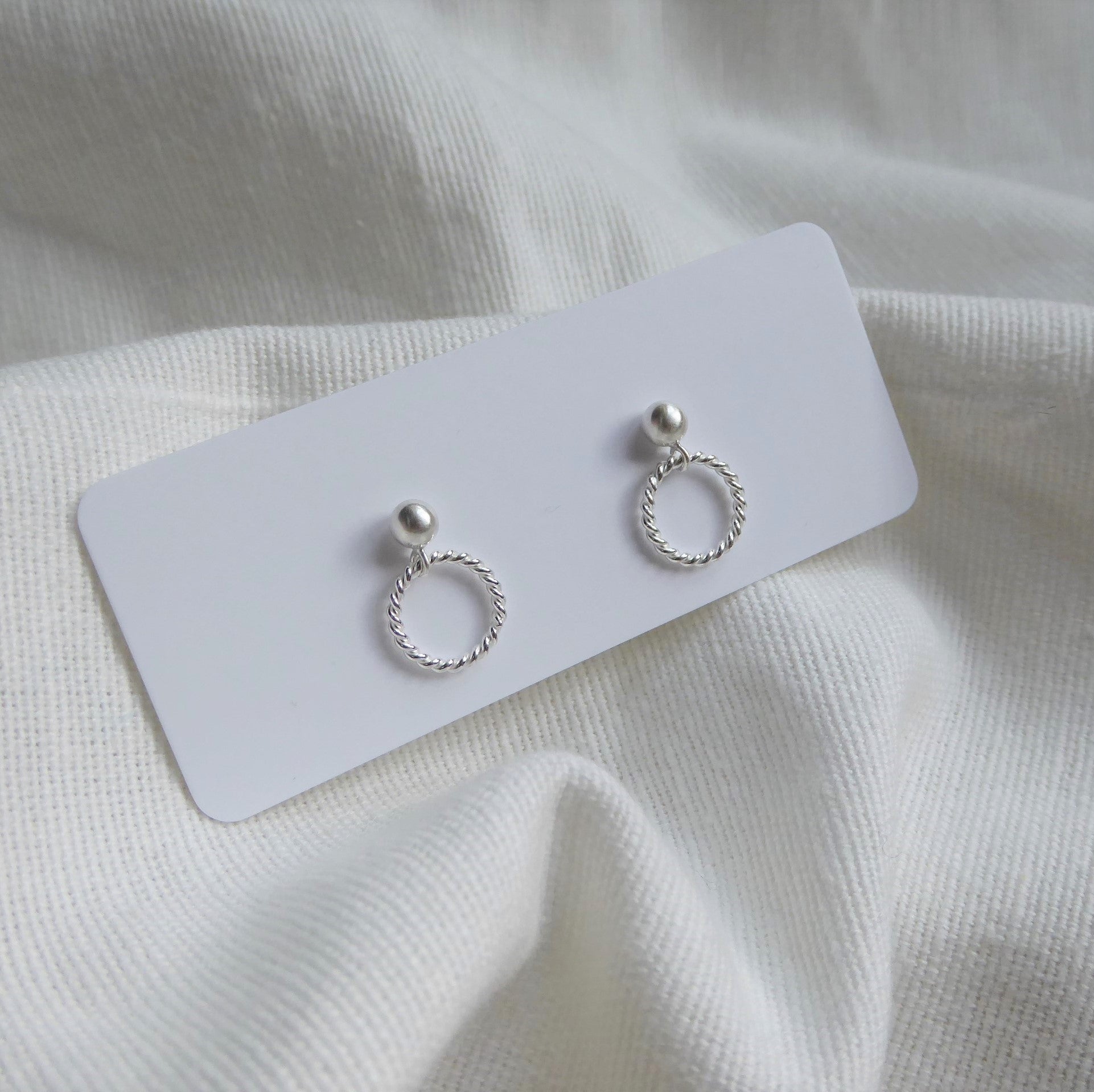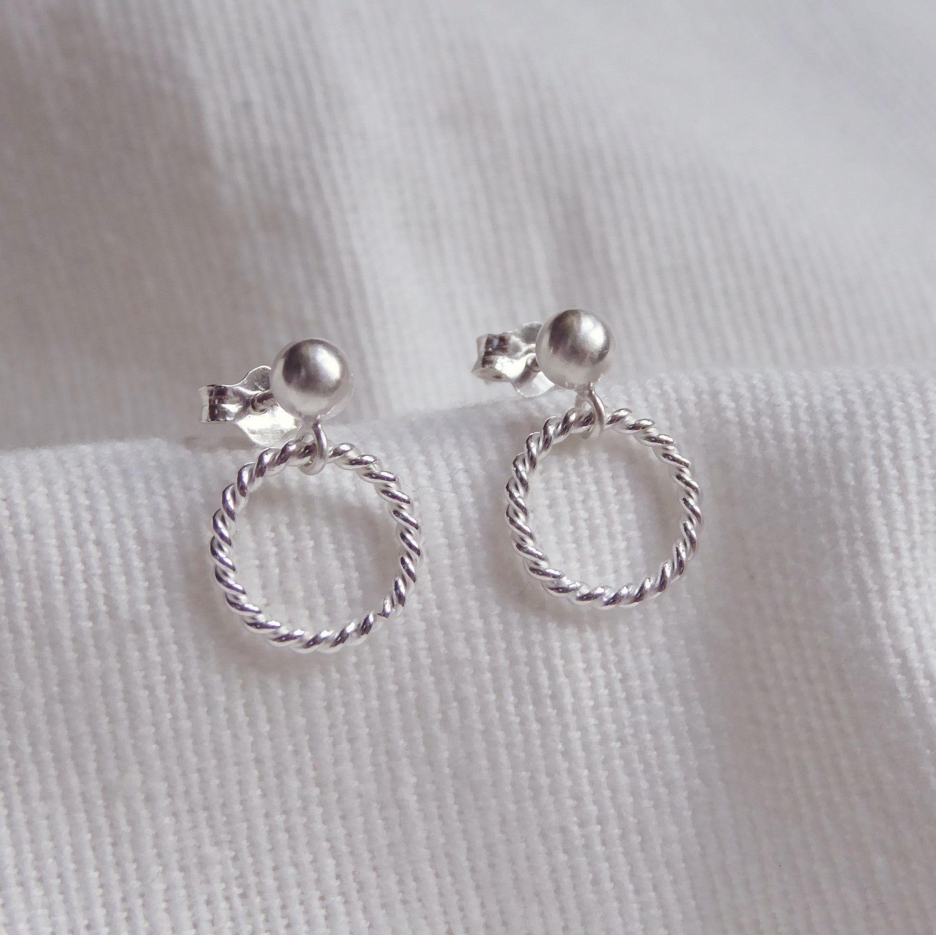 These minimal studs feature a twisted circle hanging from a frosted sphere.